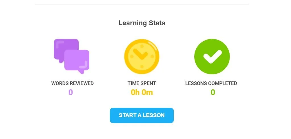 My weekly progress report from DuoLingo. Ten out of ten for effort.
