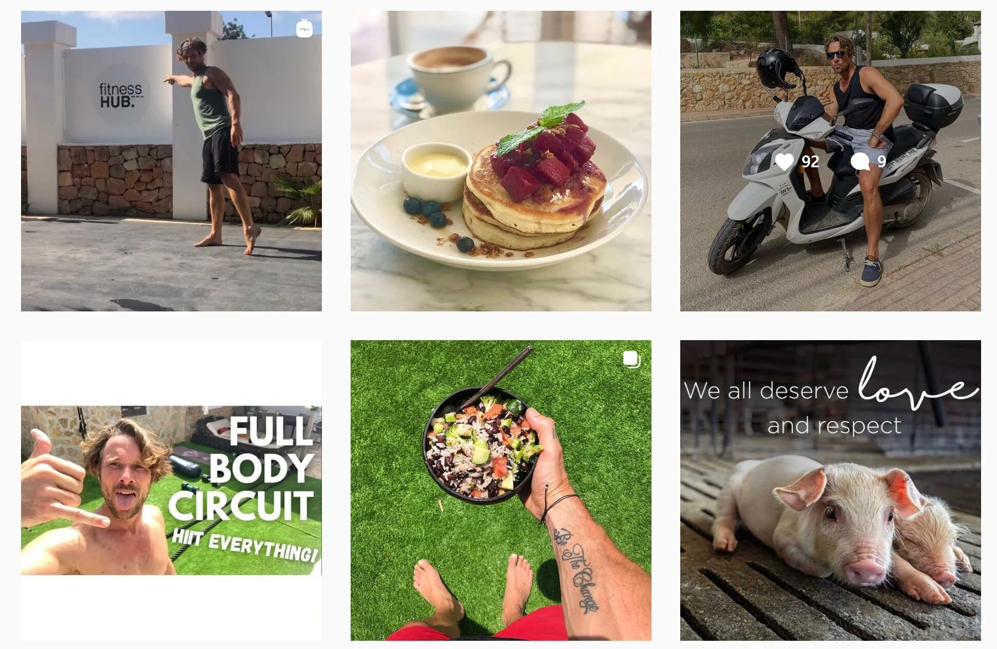 He lives in Ibiza now, from where he shares photos of smoothie bowls, his new favourite fitness challenge of crawling and his more spiritual musings on how he and we all can grow, learn, develop and feed our souls. If you’re in need of a PT, Adam is your man. He changed my life (and my abs). This is his vibe:
